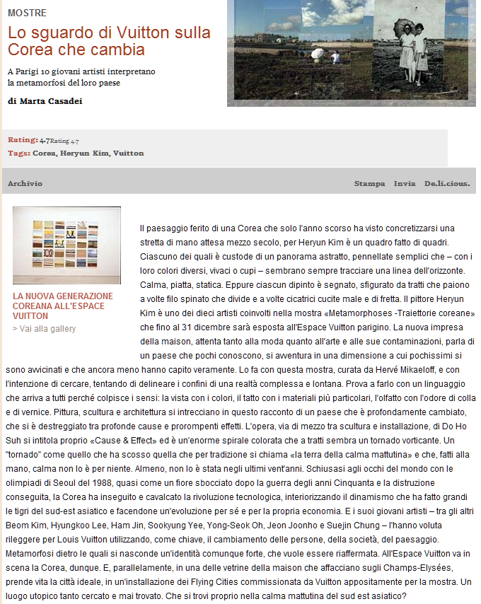 2008 < Me'tamorphoses, Trajectoires Core'ennes> Espace Culturel Louis Vuitton, Paris, France