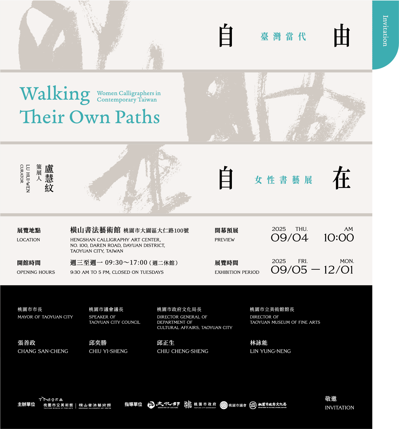 2025 <Walking Their Own Paths: Women Calligraphers in Contemporary Taiwan> Heungsan Calligraphy Art Center, Taoyuan Museum of Fine Arts, Taiwan
